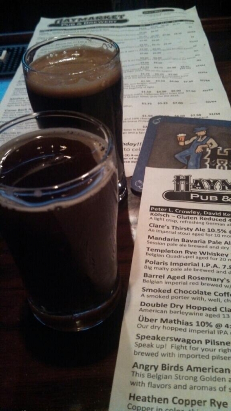 #brewvu @haymarketbeer Templeton Rye Quad and Clares Thirsty (thank god, feed her beer). Both very good. http://t.co/YuJjBLE20dPosted by @ marcatgsb, on January 12, 2014, 6:50 pm EST source: twitter